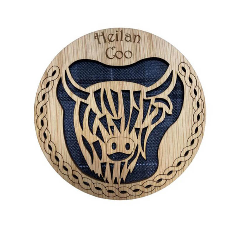 Celebrate your love for all things Scottish with our Heilan Coo Scottish Coaster in Grey Tartan. This charming coaster features an engraving of the iconic Highland cow, or "Heilan Coo," a beloved symbol of Scotland's rugged landscapes and resilient spirit.